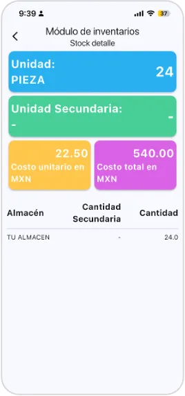 Stock con costo: Cuando se requiere una visión financiera, visualiza el valor del inventario para dimensionar el impacto del stock acumulado y respaldar decisiones operativas con un contexto financiero claro.